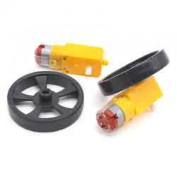 1套包含2个电机与2个车轮,可以用来制作遥控车模型,智能机器人底盘模型。 【车轮参数】:65mm轮径*12.5mm厚度,单个重量约16g,扁孔(适合TT马达)可以安装到TT马达塑料轴上 【电机参数】:3-7.2V综合性TT马达(双轴)1比200慢速-红底盖,3-7.4v供电。双轴,一端的轴安装车轮,另一端的轴可以自己配个编码器测速用。3V转速35转每分钟 【发货清单】:电机2个,车轮2个。