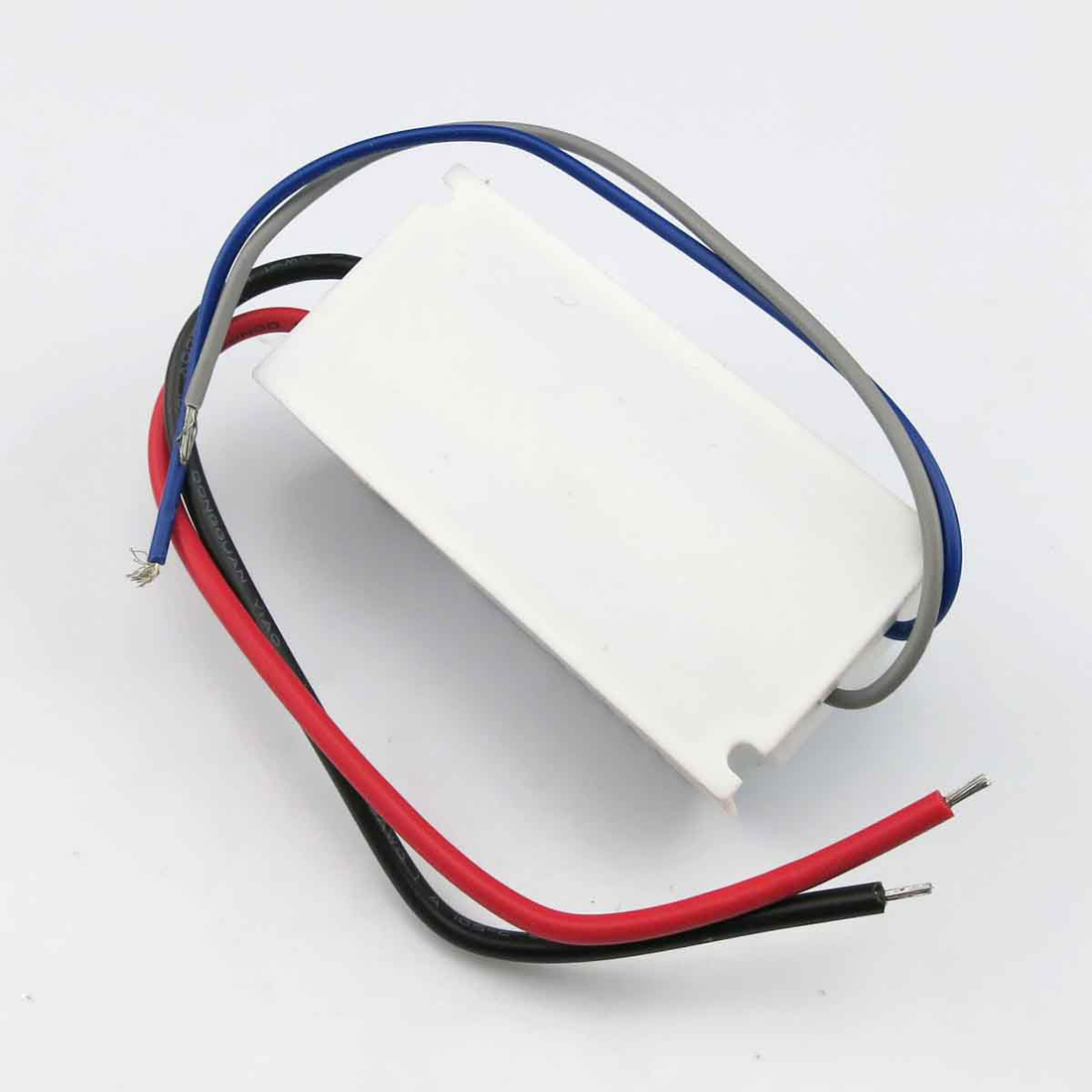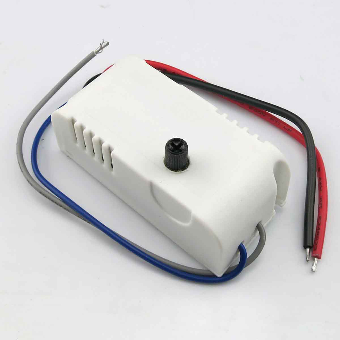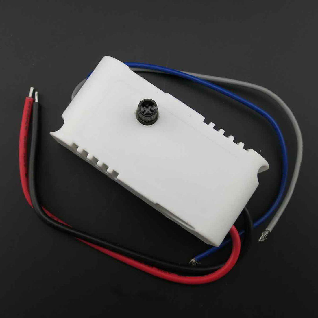 带外壳直流电机调速器 【技术参数】: 输入电压:DC 6V-24V 功率:可达80W 电流:持续电流3A 频率:21khz PWM脉宽调速范围比值:0.05-1 配电位器 【产品规格】: 尺寸:66*32*24mm。 重量:约40g 【产品特点】: 小型直流电机调速器,塑料白色外壳,精致高效。 小尺寸,大扭力,调节电机速度稳定。 【接线示意图】: 红线:接电源输入正; 黑线:接电源输入负; 蓝线、 灰线:接电机 【注意事项】: 输出不可以短路否则容易烧坏调速板!