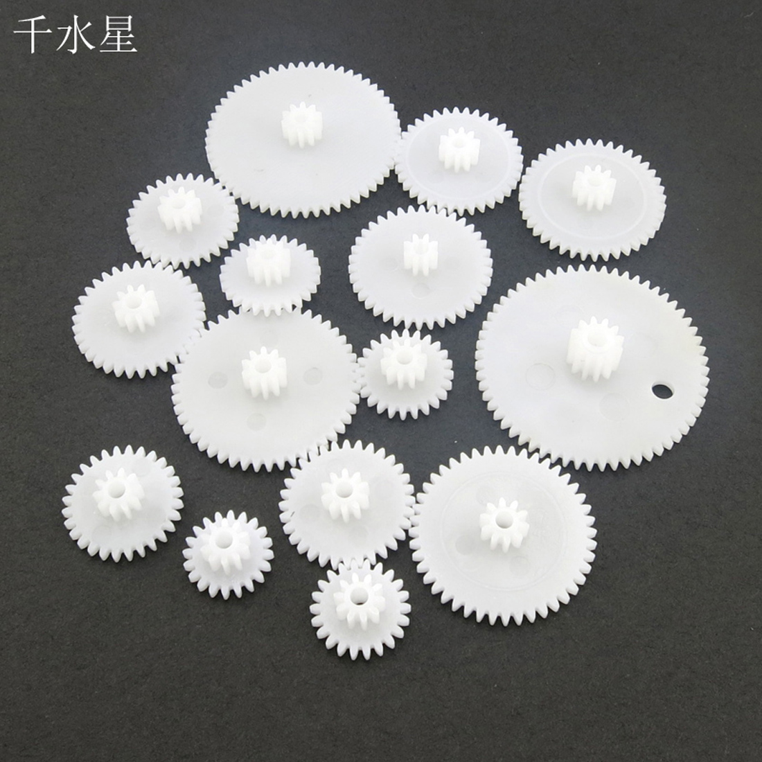 15种双层齿轮包,一包包含15种不同型号的双层齿轮,均为标准齿形、常用型号。双层齿轮就是减速齿轮,就是两层的齿轮,看上去就像一个大齿轮和一个小齿轮叠合到一起,一般用于减速组的中间部位。