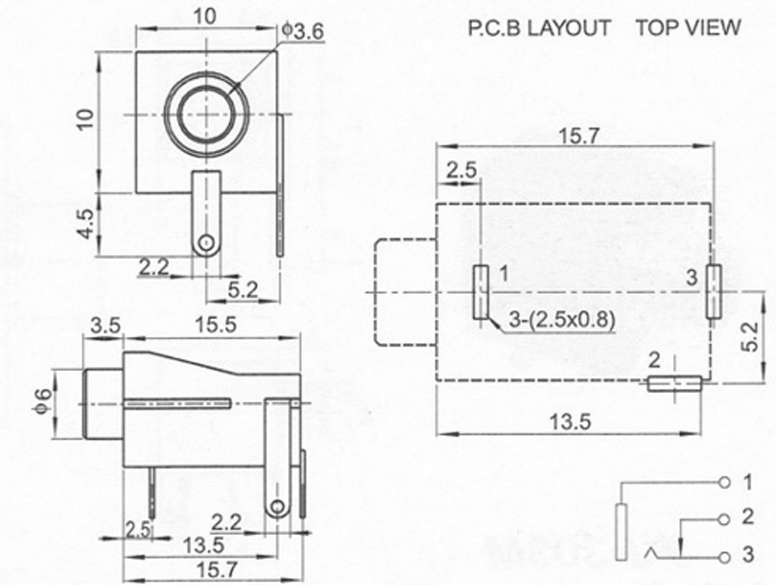 3.5mm耳机插座(三脚)是耳机插座的母座,用于焊接电子DIY作品。参数如下。