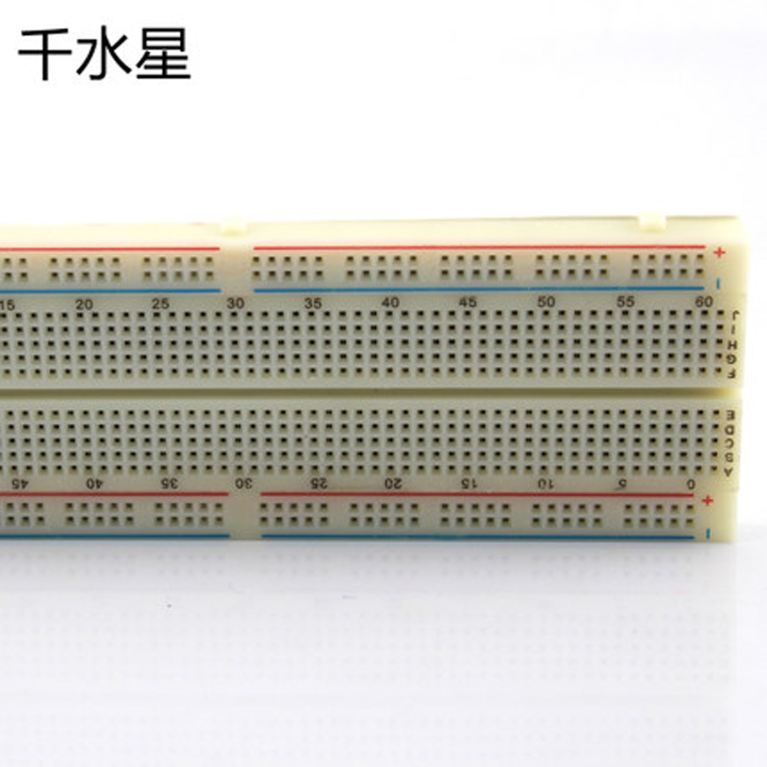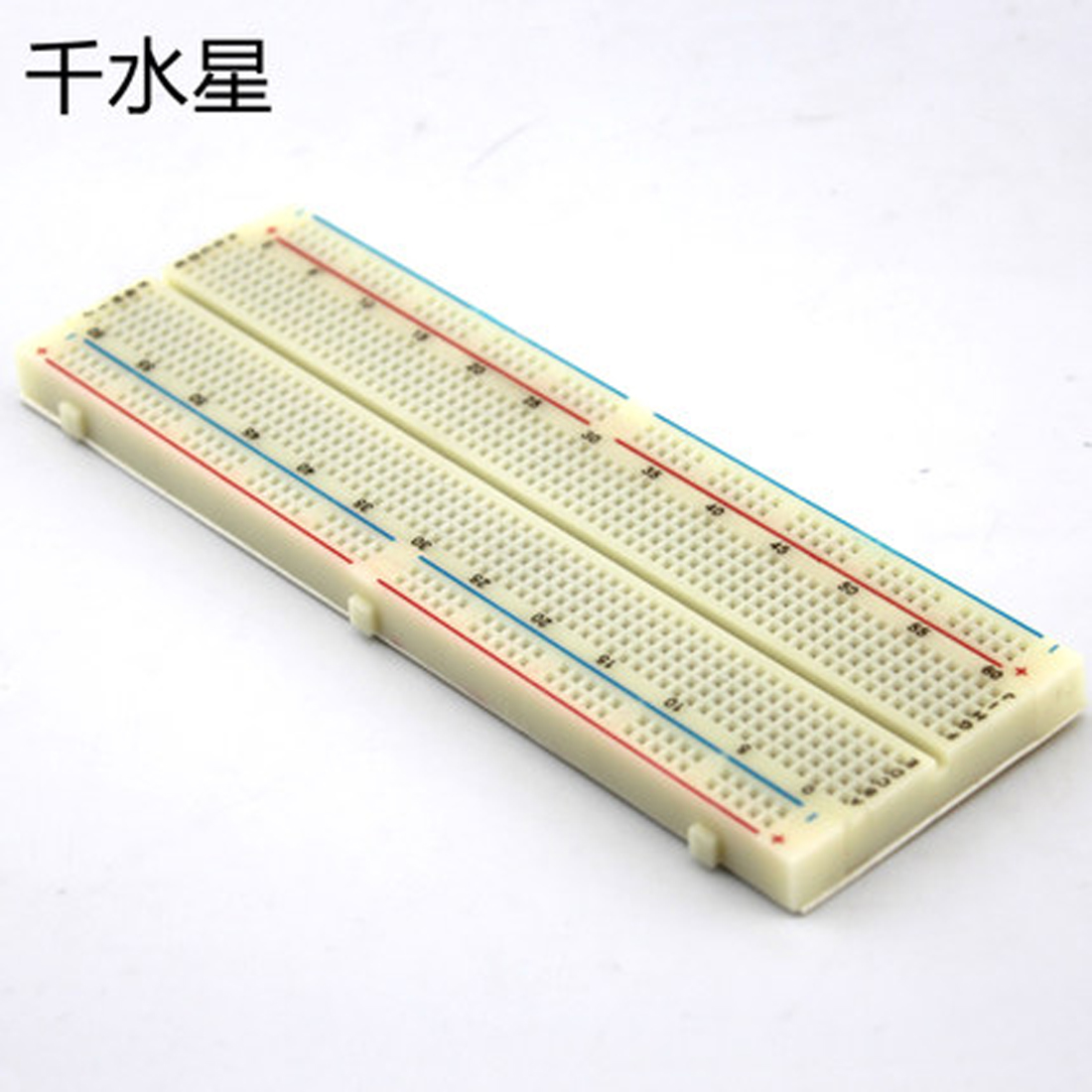 830面包板(白色),用于diy电子制作。侧面有拼接槽,可以多块拼接;底面有双面胶片,可以粘贴到任意平面上。
