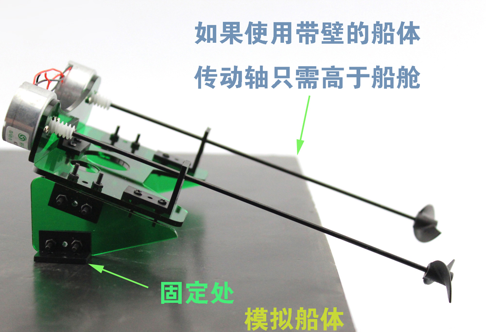 (可以使用螺丝或者胶带等各种方式固定),确保螺旋桨全部或者部分在水面以下,通电后即