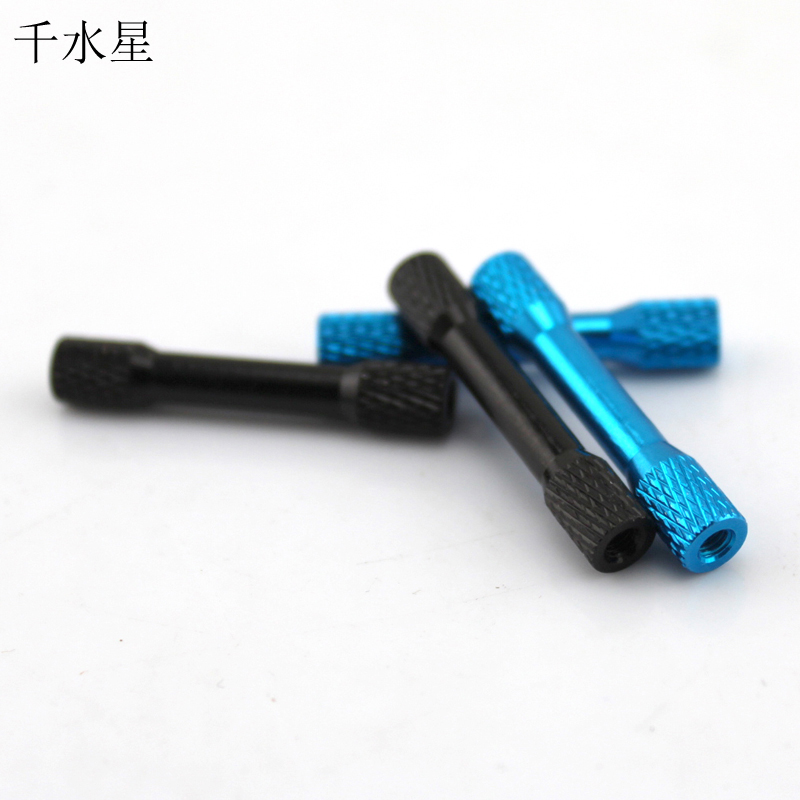 M3*35mm网纹连接柱,是一款与铜柱类似的隔离柱,采用铝制作,质量轻,硬度大,表面处理成黑色、蓝色,又能够防锈,用于制作各种模型车架、机器人架子。