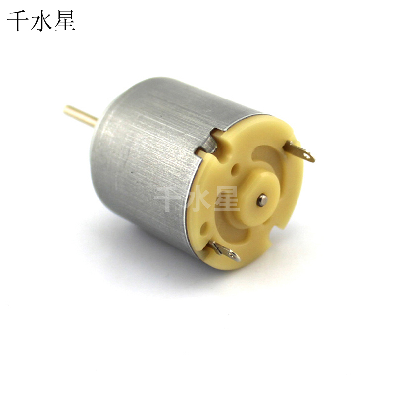 圆形R260电机,电压范围3-6v。 电机直径:2.36cm 机身长度:2.7cm(不含轴) 电机轴长:15.5mm 电机轴径:2mm 电压范围:3-6V 参考转速:6V时,8000每分钟,空转电流0.07A,堵转电流0.9A。