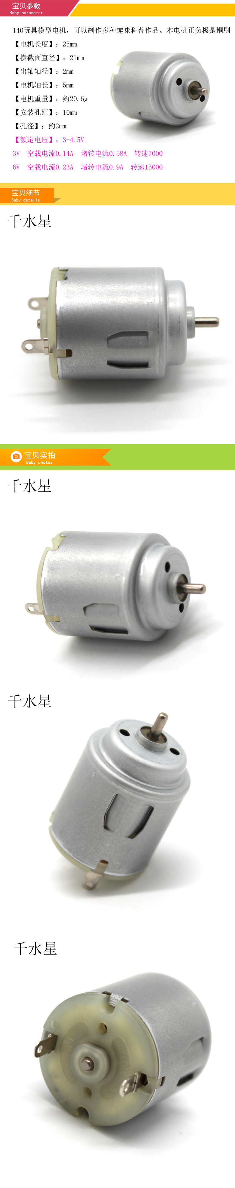 单轴140电机 DIY模型马达 遥控车电机 模型直流电机 微型小马达3v