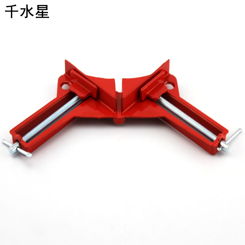 双手柄90度直角,夹压板采用铸铝合金材质坚固耐用,内部螺纹精铁制作,硬度高,不易打滑。 用于制作90度的连接杆,木棒,木板等。 夹口长度:76mm 钳口高度:24mm 钳口宽度:110mm