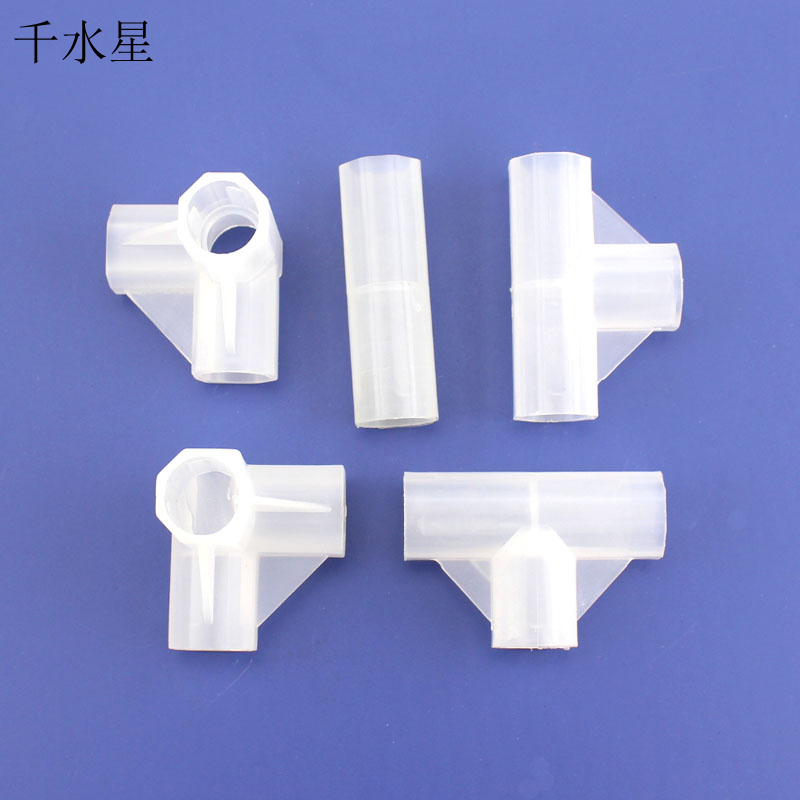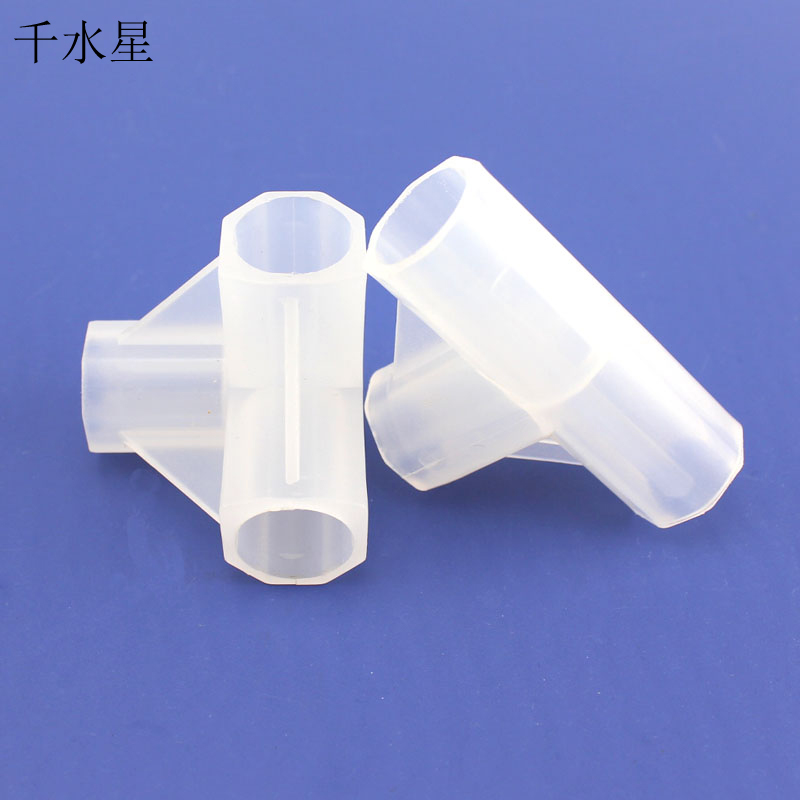 两通可连接两根16mm圆棒或圆管,三通三根,四通可连接四根。 于是,可以利用以上三种配件自由组合,搭建出各种各样的立体结构架子。 内径:16mm(适用于外径16的圆棒和管子) 外径:20mm 长度:两通三通长60mm,四通长40mm