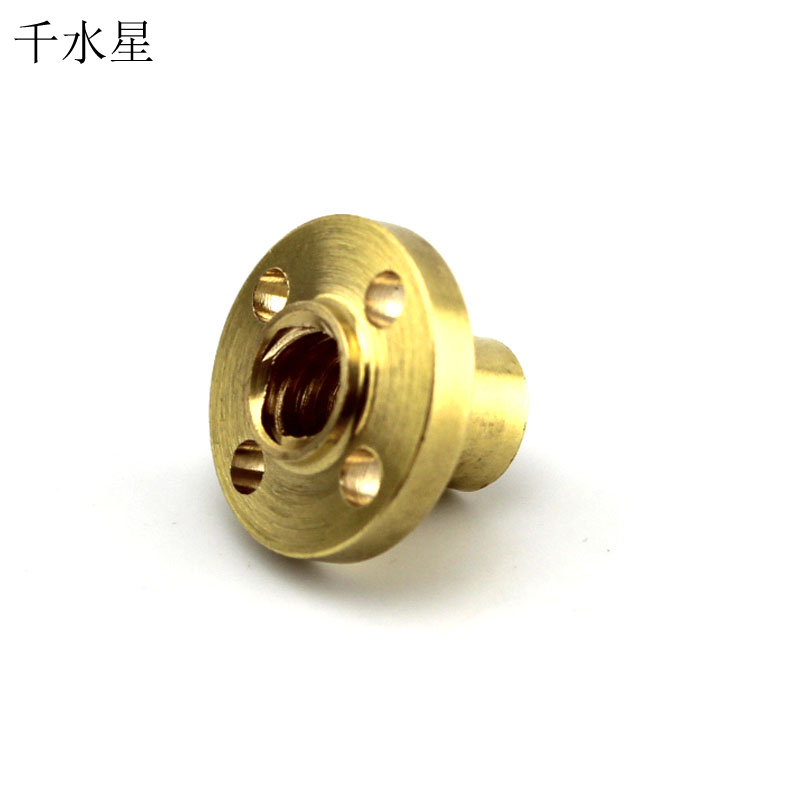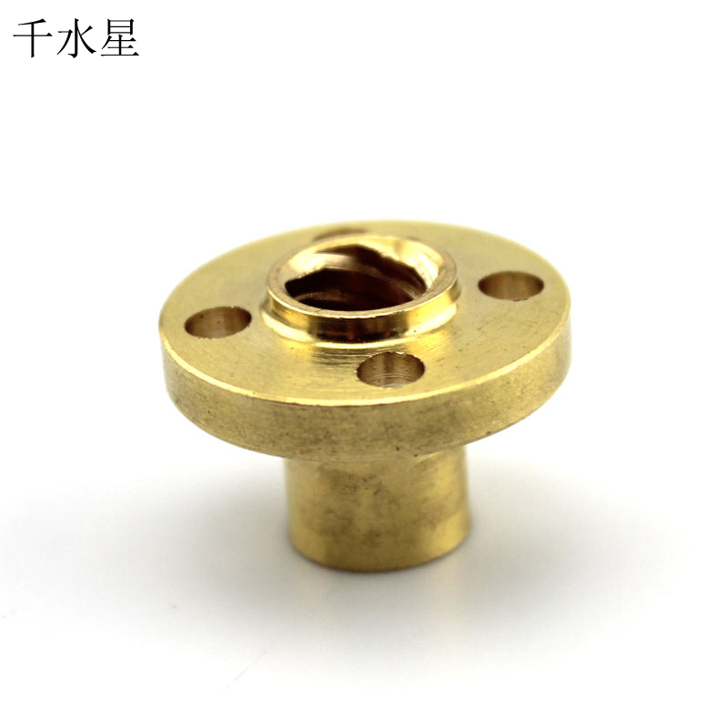 T8D2铜螺母是用在T8D2丝杆的螺母 ,黄铜的,本组件可以把电机圆周转动转化 为直线运动,黄铜螺母每转1圈,它在丝杆上的位置就会移动8mm。 链接只是一个铜螺母的链接 【内径尺寸】:8mm 【螺距参数】:2mm 【导程距离】:8mm 【底盘直径】:22mm 【圆柱直径】:10mm 【固定孔径】:3mm
