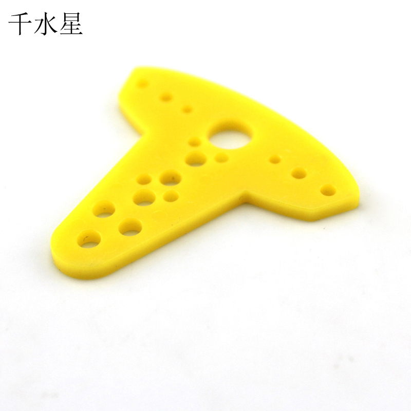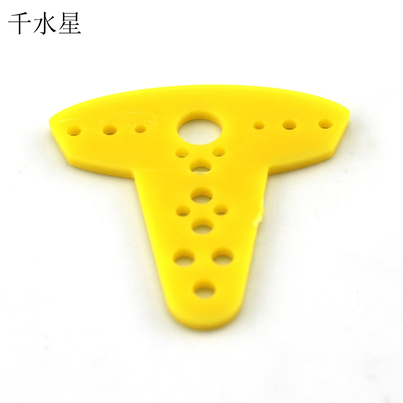 DIY特殊功能片(黄色),一款拼装模型配件。此固定片可以固定带孔的300电机。 长度:42mm 宽度:40mm 厚度:2mm 中心大孔:6mm 固定小孔:2mm和3mm 参考重量:约1.72g 产品材质:ABS塑料