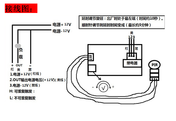输出方式:继电器控制输出dc12v高电平/低电平
