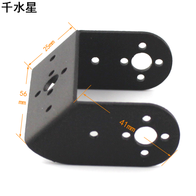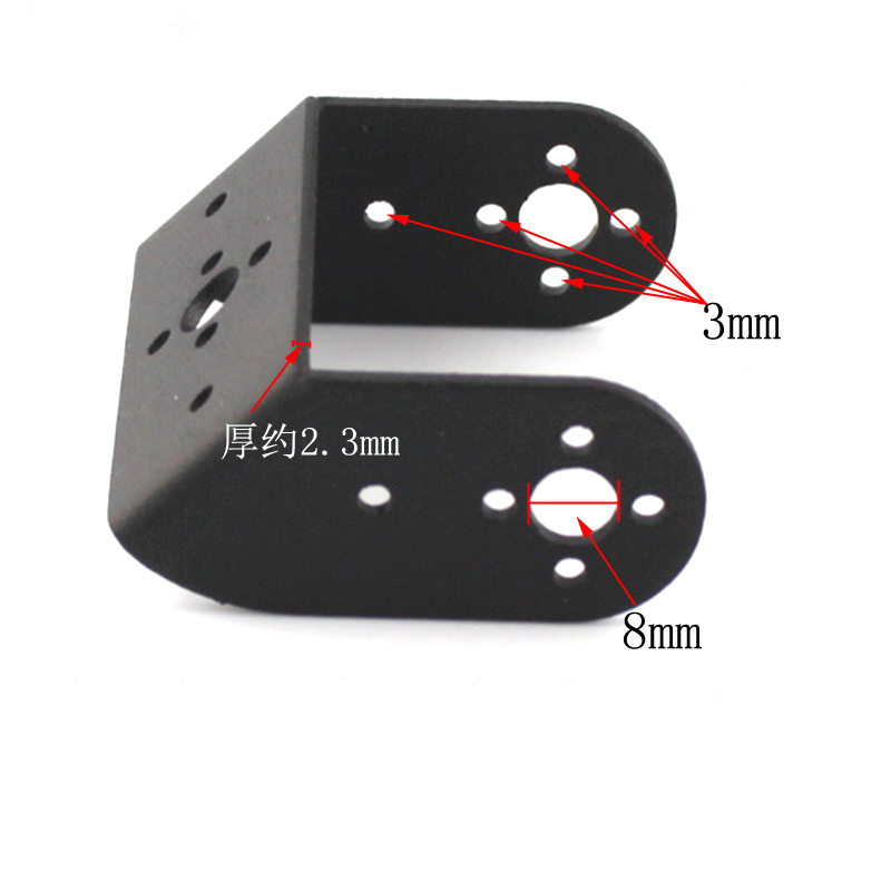用于舵机的铝合金舵机架,多个本支架与周边配套支架连接到一起,可以搭建8足蜘蛛机器人或 者人形机器人,配合单片机芯片可以制作智能机器人。 【产品尺寸】:56X25X41mm 【适合舵机】:MG995舵机、996舵机、996R舵机 【产品材质】: 2mm硬铝板 表面处理:喷砂氧化 【参考重量】:约18.2克