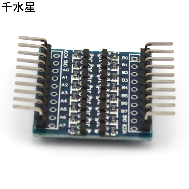 8通道的高电压逻辑与低电压逻辑双向转换,实现Ax与Bx双向互转。转换电平范围1.8V-6V。 【使用说明】:(以3.3V、5V互转为例) VCCA接3.3V电源 VCCB接5V电源 GND接电源负极,两个电源共地 【演示案例】: Ax输入3.3V TTL电平,Bx将输出5V TTL电平 Bx输入5V TTL 电平,Ax将输出3.3V TTL电平 【模块尺寸】:28mm X 27.5mm