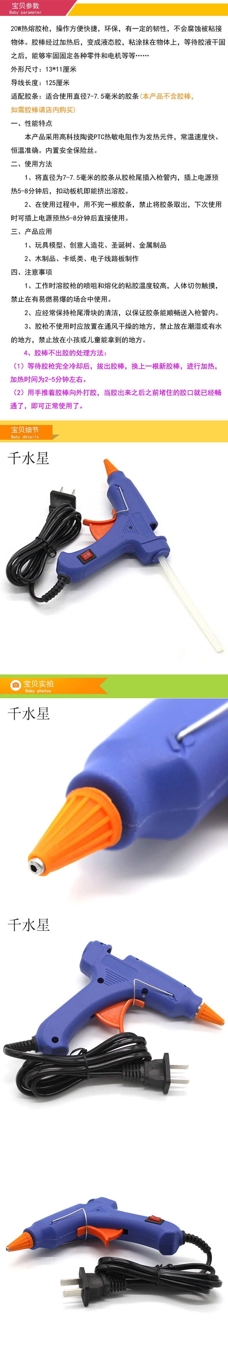 20W蓝色热熔小胶枪 小号热胶枪 绝缘焊接 手工电热溶棒塑料胶水条