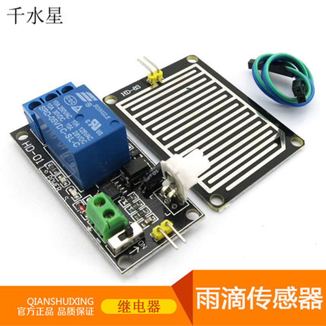 继电器雨滴传感器,带继电器的雨滴或者下雪传感器,本传感器直接可以接3-6V的小电动机或者小水泵。当检测板上的雨滴量达到白色灵敏度调节钮所设定的湿度之后就会使继电器工作,那么你的电机就可以转动或者停止了(电机的动作是转动或者是停止,取决于你选的线路是2和3,还是2和1)接线方式(参考土壤湿度传感器接线链接):