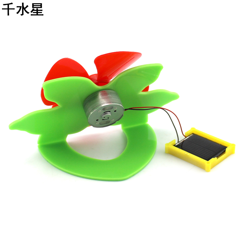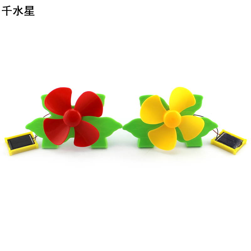 花儿与绿叶,你还好吗? 花儿与绿叶是一款千水星出品的diy学习用品。本产品能培养科学的思维方式,让人人形成爱科学、爱学习的好习惯。 太阳光通过电池板转换成电能,然后通过电机带动风叶转动。放在草丛、或阳台群花中……与花草为伴…… 【产品特点】:锻炼动手动脑能力,可装饰室内 【实验原理】:由电池板太阳能转变成电能,带动风叶转动 【风叶颜色】:红色、黄色两种颜色。需要其他颜色,量大可定制。 【产品尺寸】:高80mm*宽118mm >>可选配件:2节 五号 透明电池盒