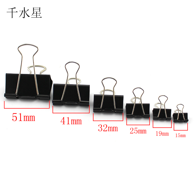 此款黑色长尾夹子有15-51mm六种尺寸可以选择,加持力强,不易脱落,使用方便。