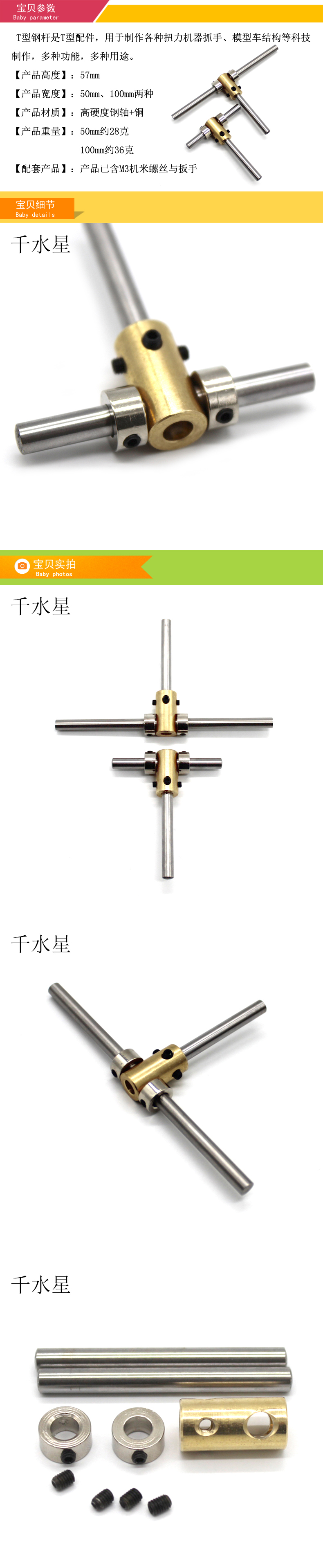T型钢杆 手工四驱车改装连接件 DIY模型制作多功能连杆配件材料