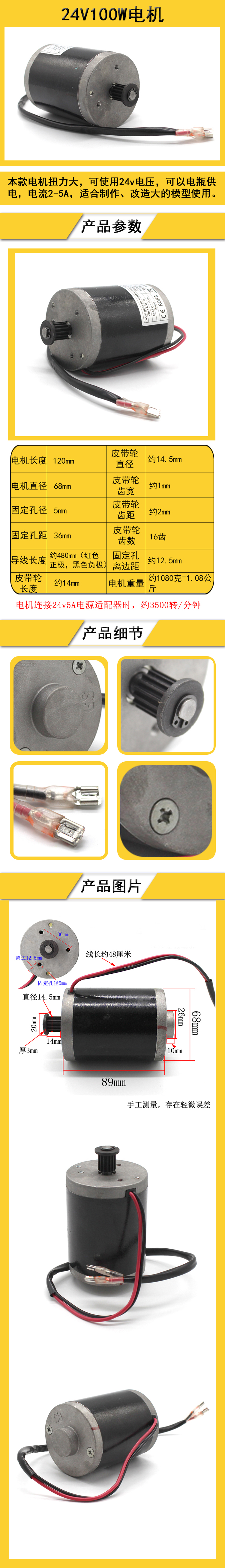 24V100W电机 DIY电动滑板车改造大扭矩24V马达 皮带轮直流电机