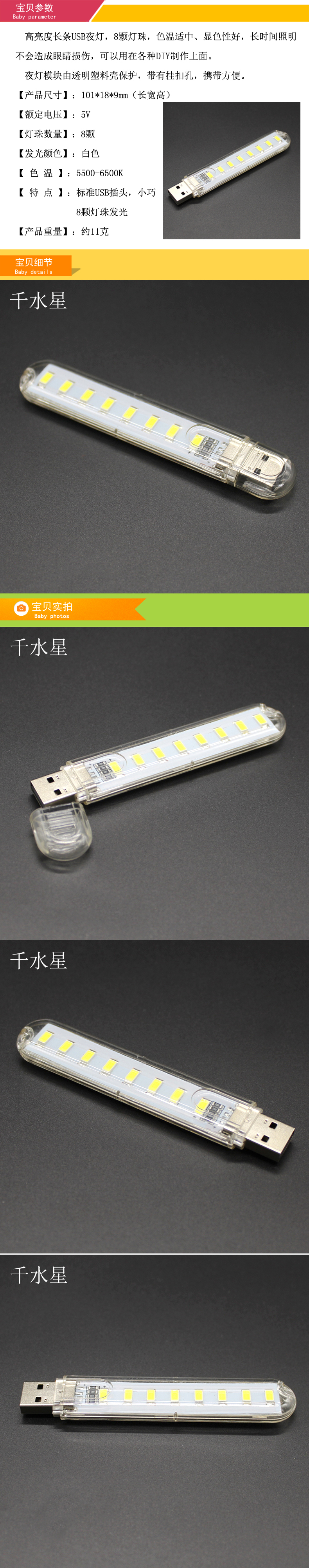高亮度长条USB夜灯 手工DIY趣味电路制作笔记本灯5v发光夜灯模块