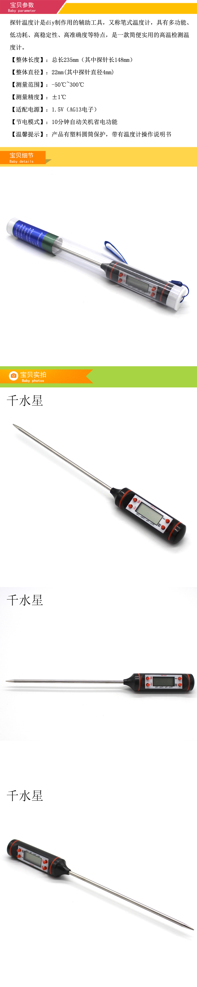 探针温度计 电子测温仪 多功能高温检测笔式温度计 DIY辅助工具