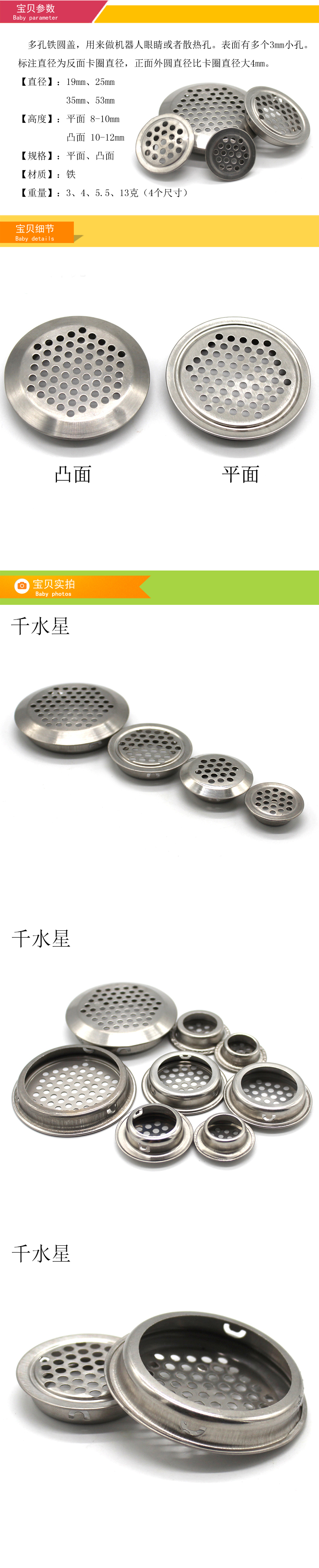 多孔铁圆盖 DIY机器人车模模型配件 机器人眼睛 盔甲模型 散热孔