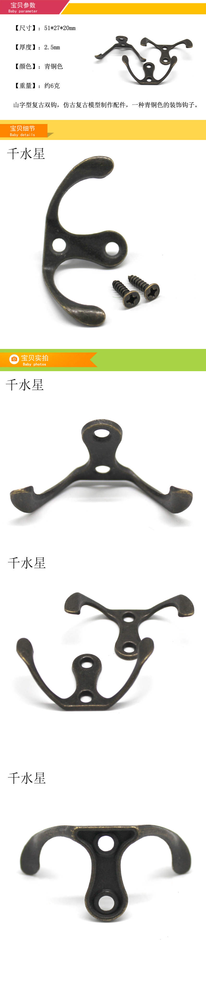 当前位置: 首页 > DIY配件 > 常用配件 > 山字型复古双钩 模型挂钩DIY拼装配件 仿古复古青铜色装饰品