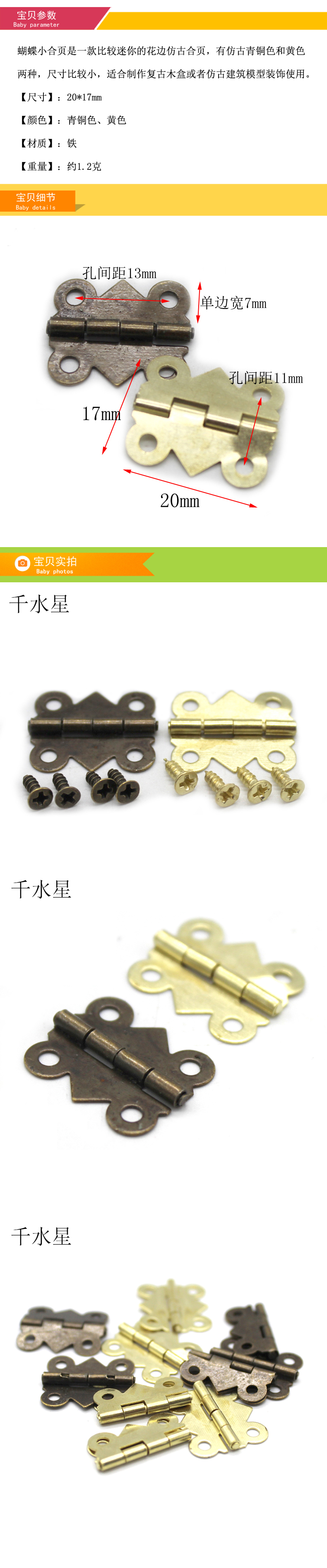 当前位置: 首页 > DIY配件 > 常用配件 > 蝴蝶小合页 花边迷你小合叶180度折叠铰链中式仿古模型合页门配件