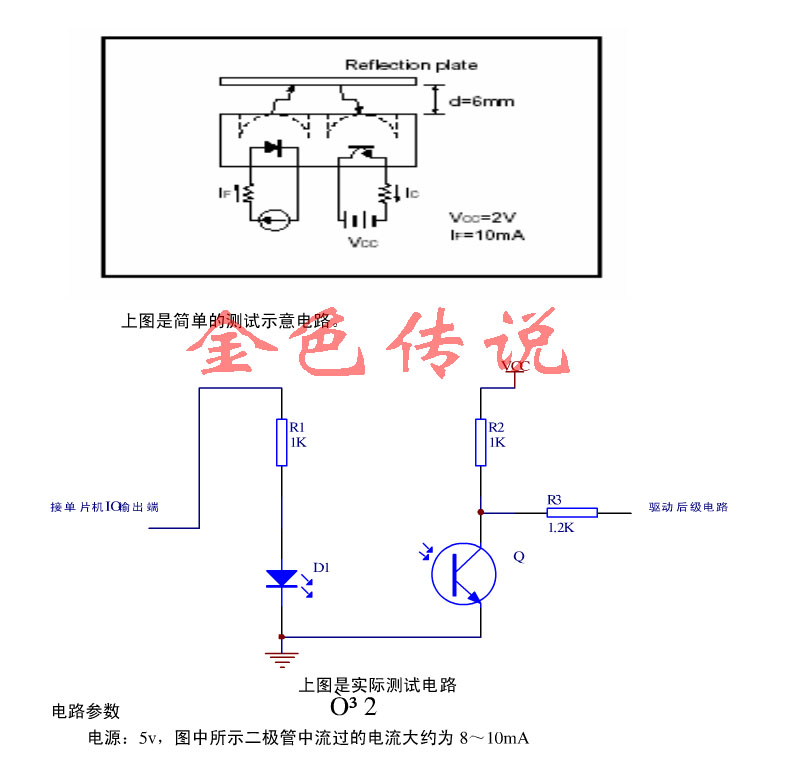 在以上视频中的实际测试中,共用1个电源,发射电压在6v(接电阻100 R),接收电压为6v(接电阻100R),有效反射距离在5cm左右,放大器 使用的是TIPP122达林顿(链接),把LED换成电机就能用于制作小车 自动壁障传感器。