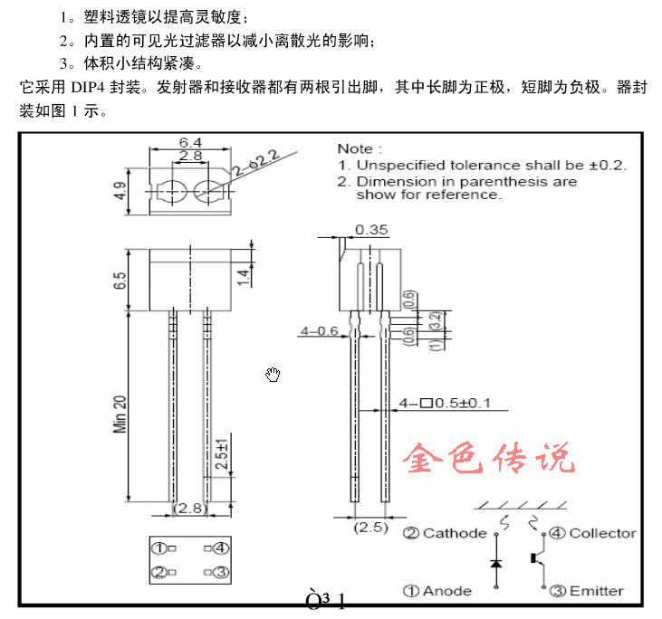R),接收电压为6v(接电阻100R),有效反射距离在5cm左右,放大器