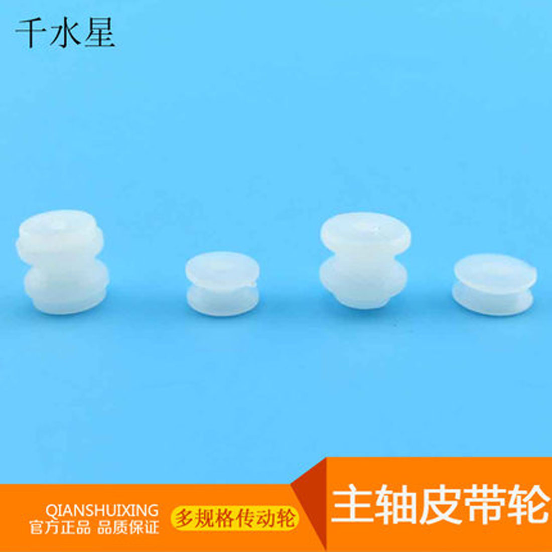 主轴皮带轮,安装在小马达轴上的塑料皮带轮,因生产工艺不同,价格有所差异,有三种孔径,分别如下: