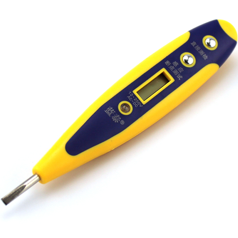 测试范围:12-220V 测试方法:如果是直接检测是否带电手指按住直接检测按钮,测电笔金属头 接触被测物体