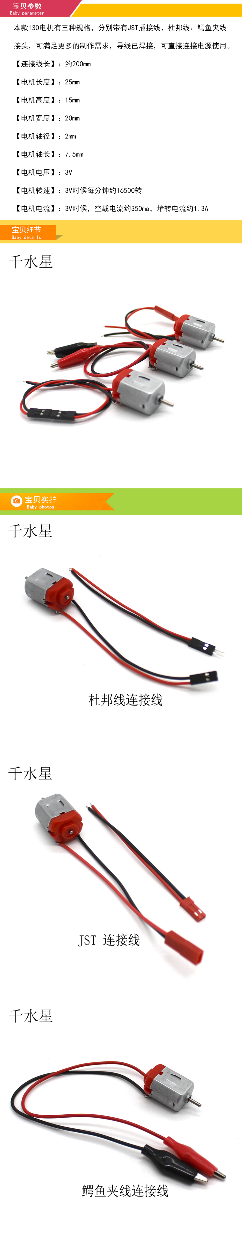 130电机 带线JST 杜邦线 鳄鱼夹线插接线接头马达 DIY模型电动机