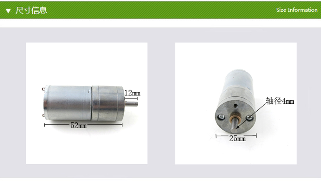 25GB型减速电机,搭配的是370电机,扭力大,性价比高,金属结构,适合制作机器人小车或者其他模型。