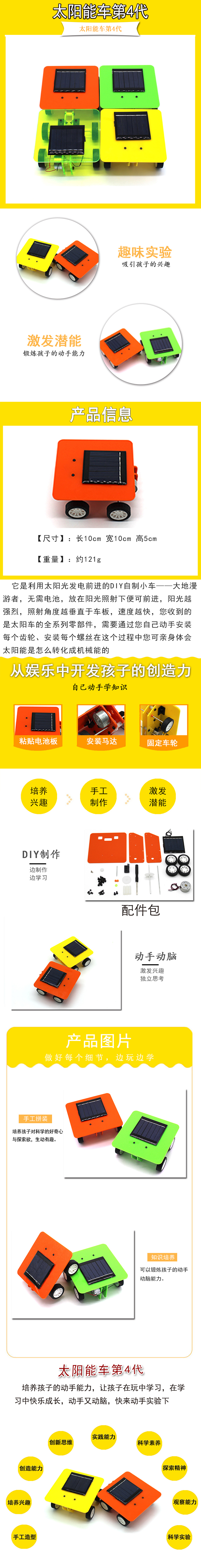 太阳能小车4号 青少年创客教育科学小制作 光能发电模型 手工拼装
