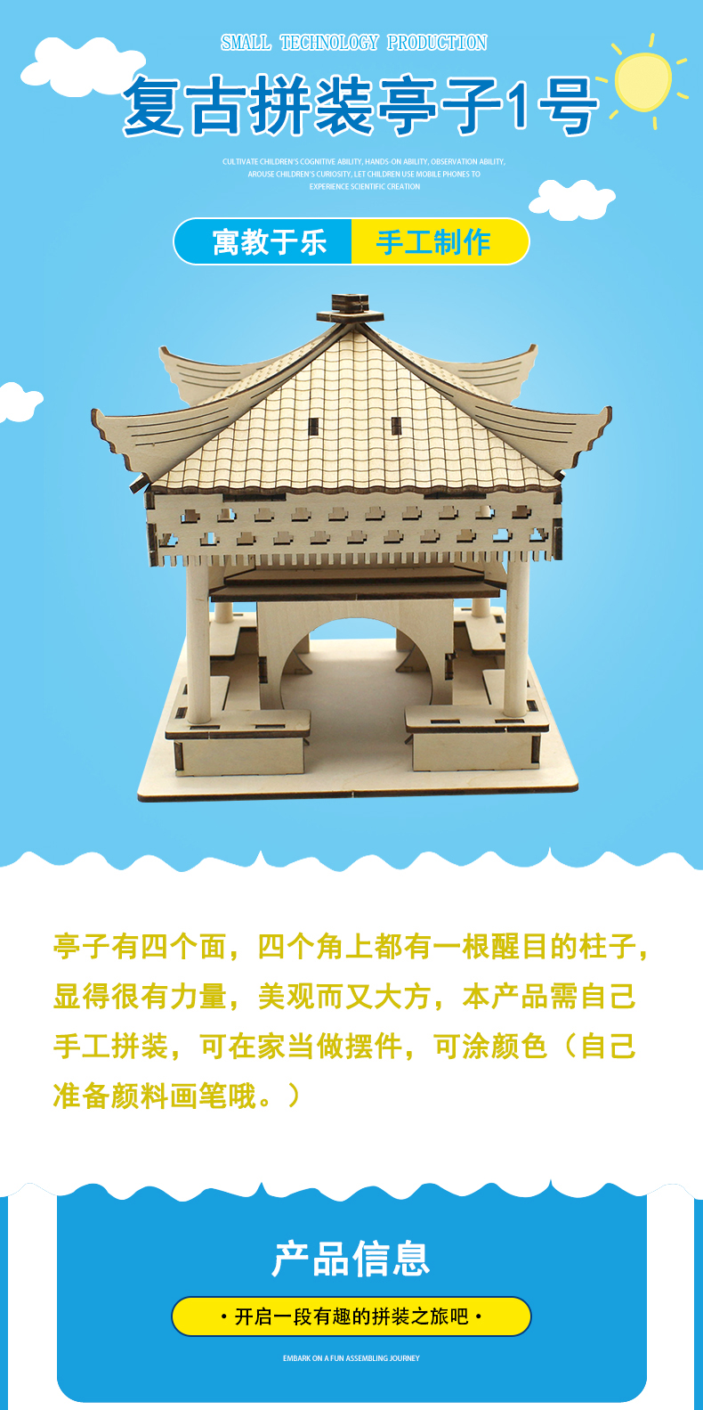 当前位置: 首页 > 手工制作 > 科技小制作 > 复古拼装亭子1号中小学生木板组装科技小制作材料包DIY创意小发明
