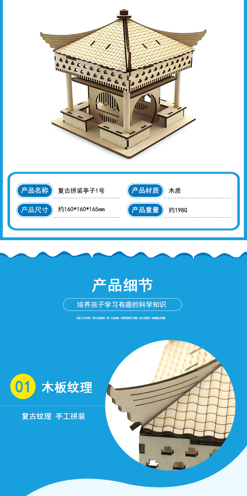 复古拼装亭子1号中小学生木板组装科技小制作材料包DIY创意小发明