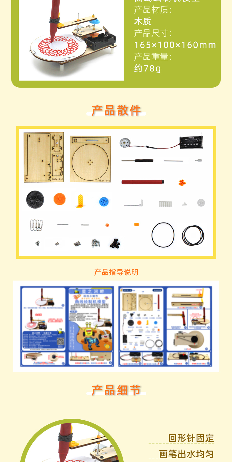 [星之河畔]曲线绘制机模型 DIY手工拼装自动绘画机小学生手工科技小制作