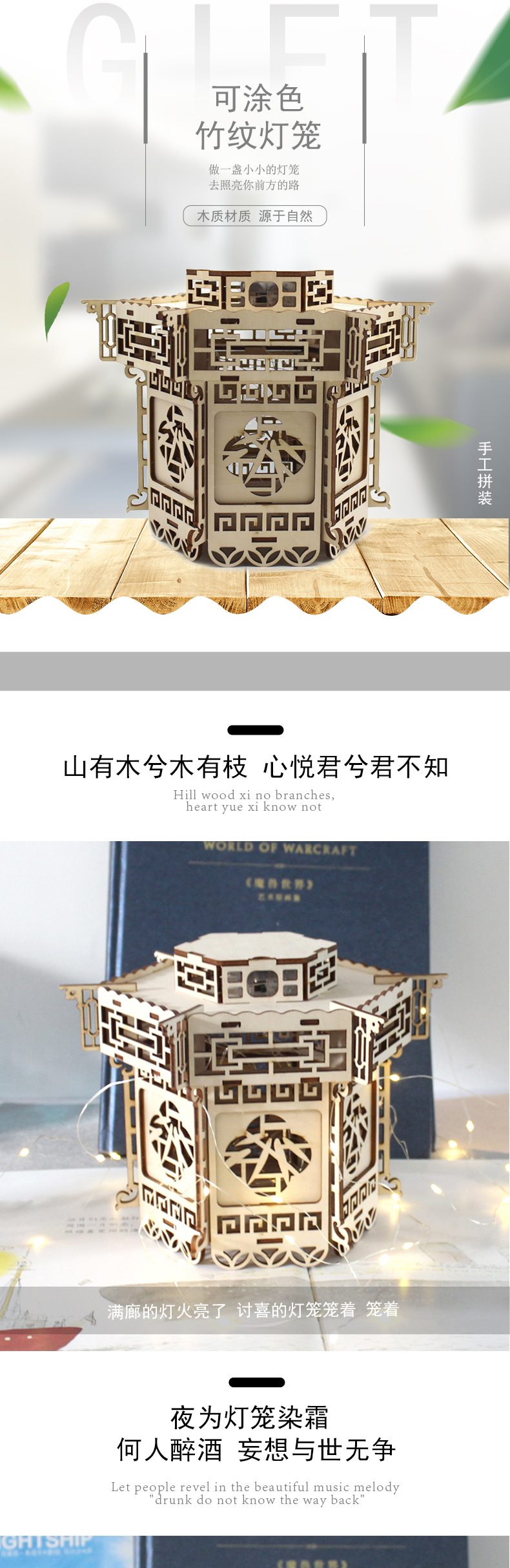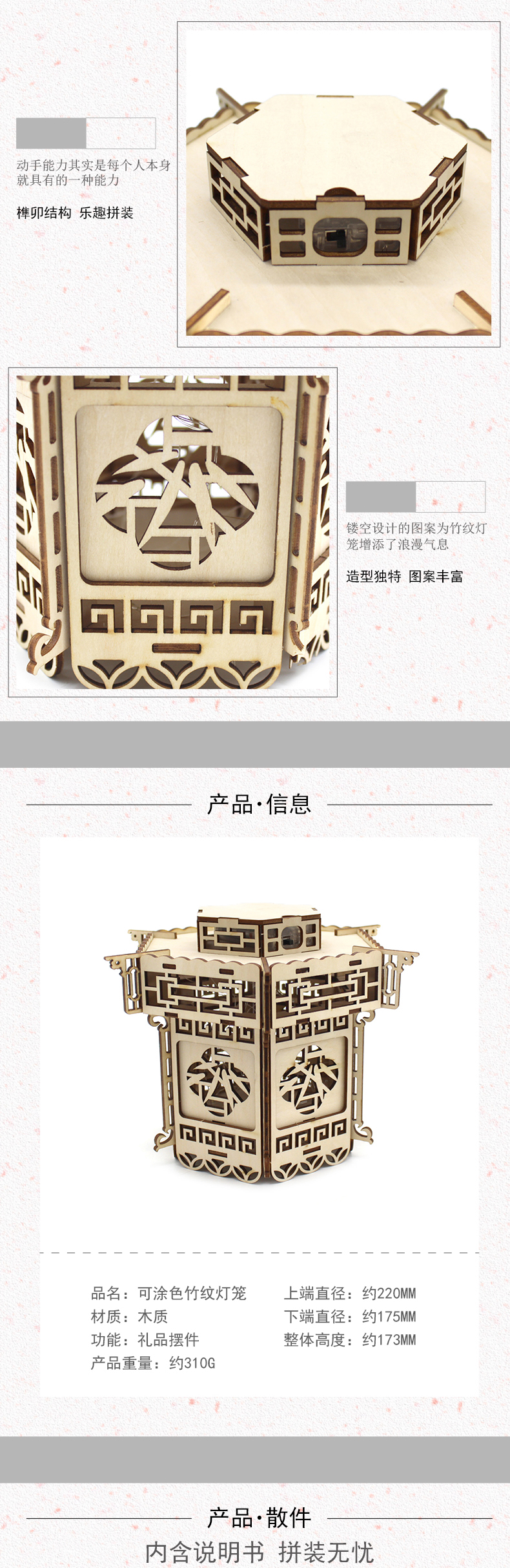 可涂色竹纹灯笼 diy材料自制创意手工灯笼木质复古手工家居装饰