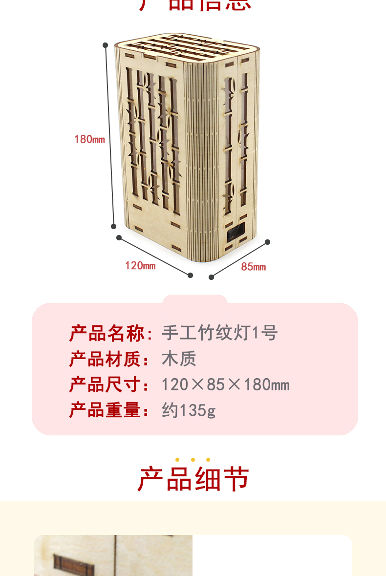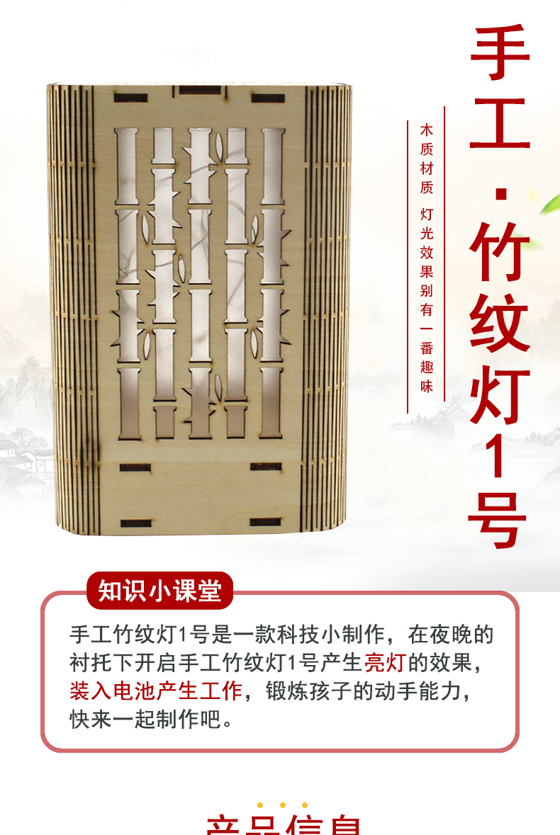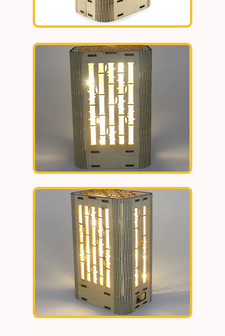 手工竹纹灯1号木板拼装镂空灯diy科技小制作材料桌面摆件学生礼物
