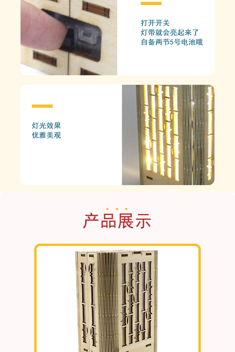 当前位置: 首页 > 手工制作 > 科技小制作 > 手工竹纹灯1号木板拼装镂空灯diy科技小制作材料桌面摆件学生礼物