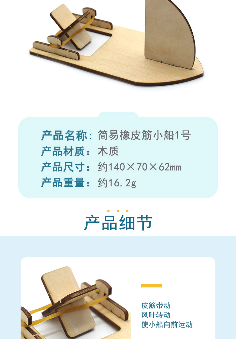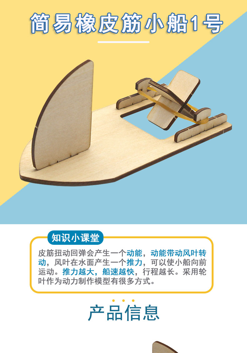 [星之河畔]简易橡皮筋小船1号diy学生手工拼装船模stem教具小制作