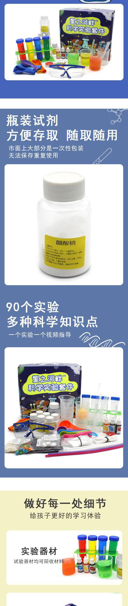 我们的科学盒子采用独立瓶装(非一次性袋装),可以