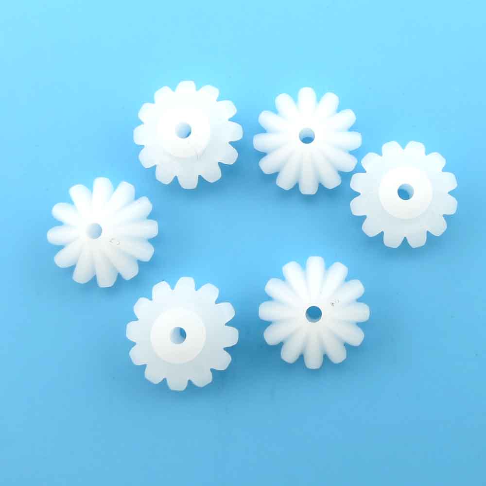 伞齿也是一种锥齿轮,2个配成1对使用,可以将传动角度改变90度。 【产品模数】:1 【产品齿数】:12T 【产品内孔】:1.95(紧配2mm轴) 【产品厚度】:7.14mm 【参考直径】:12.8mm 【产品材质】:POM 【发货清单】:1只