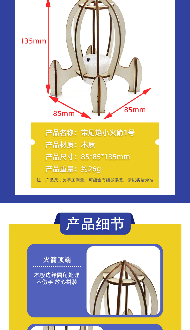 当前位置: 首页 > 手工制作 > 科技小制作 > 带尾焰小火箭1号科学实验小发明DIY航天模型科技小制作手工材料包
