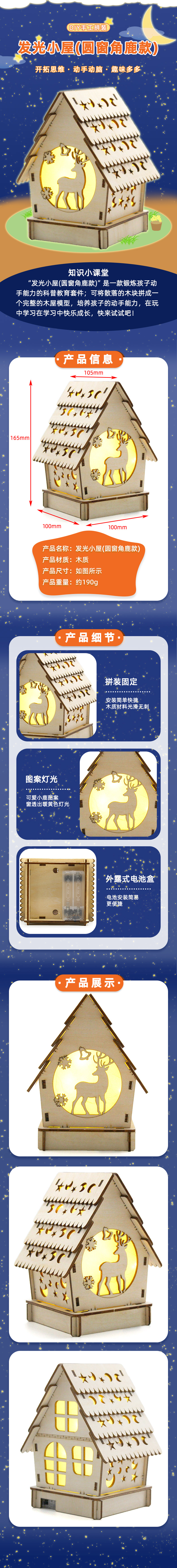 发光小屋(圆窗角鹿款)科学小制作发明实验教具拼装益智diy
