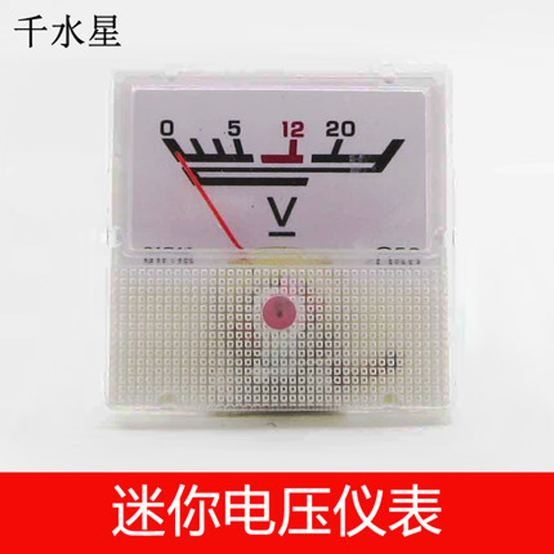 12v电压表头,塑料外壳,迷你小型 【 尺 寸 】:40*40mm 【最大量值】:12V直流 【使用方法】:将本表头,按反面正负极提示,并联在电路中即可,可以随时反应您的模型制作电路的电压变化值