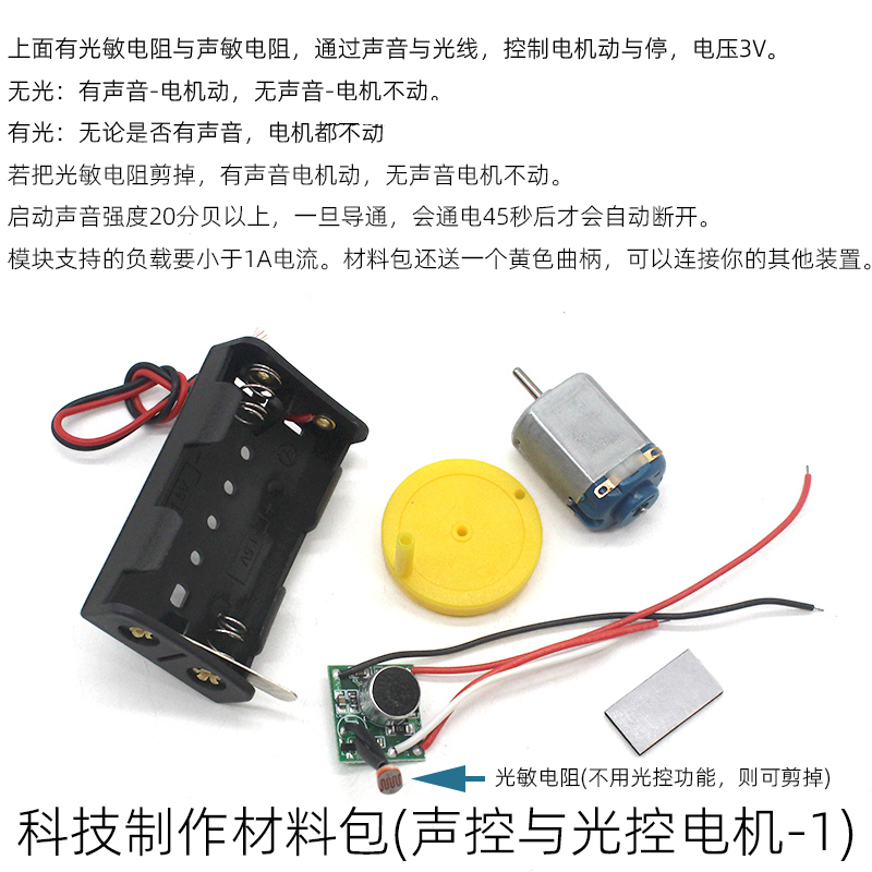 科技制作材料包(声控与光控电机-1)