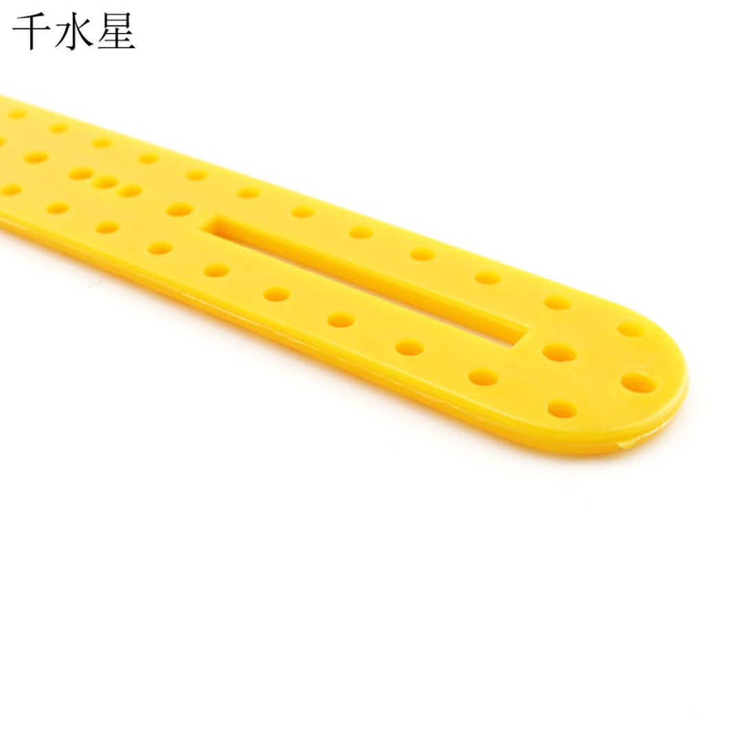 多孔塑料连杆,支架片,台面,适合制作可以行走的机器人,四足机器人,两足机器人,或者六足机器人等 (1)长度:90mm (2)宽度:15mm (3)厚度:1.6mm (4)孔径:孔有3排,中间排孔径2.05(松陪),两侧孔径1.95mm(紧配) (5)任意相邻孔距:5mm