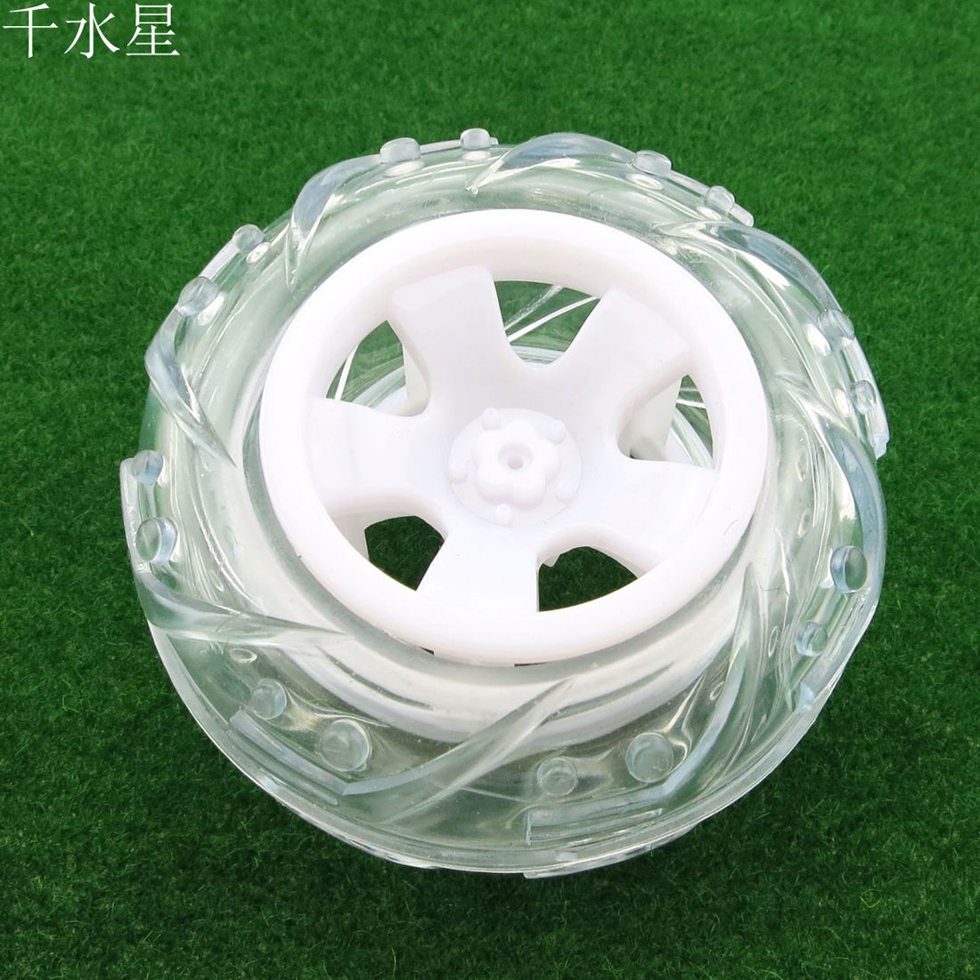 3*78mm越野车轮,紧配3mm直径的车轴。78mm外径的车轮需要功率较大的马达做动力,因此制作成的模型也比较大。