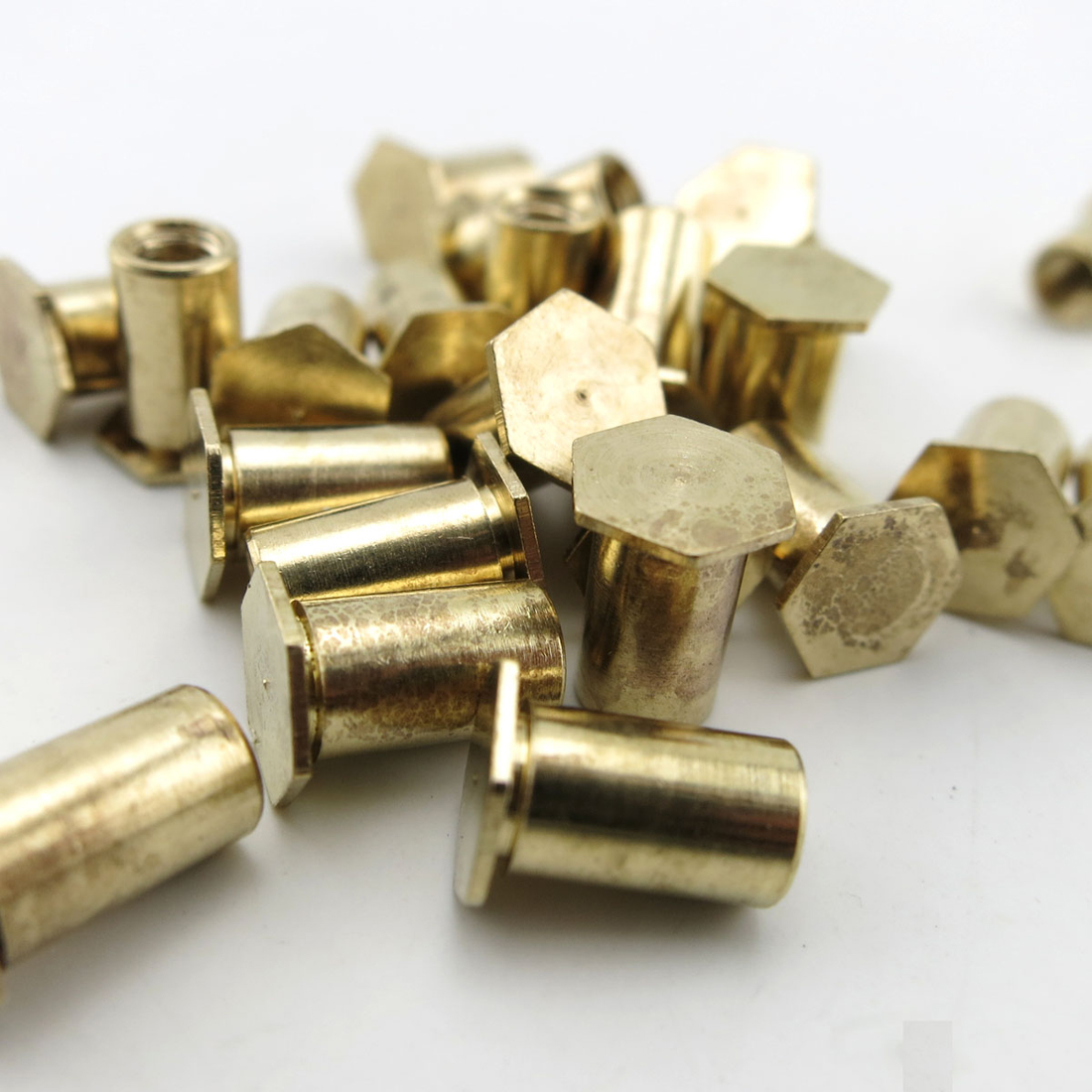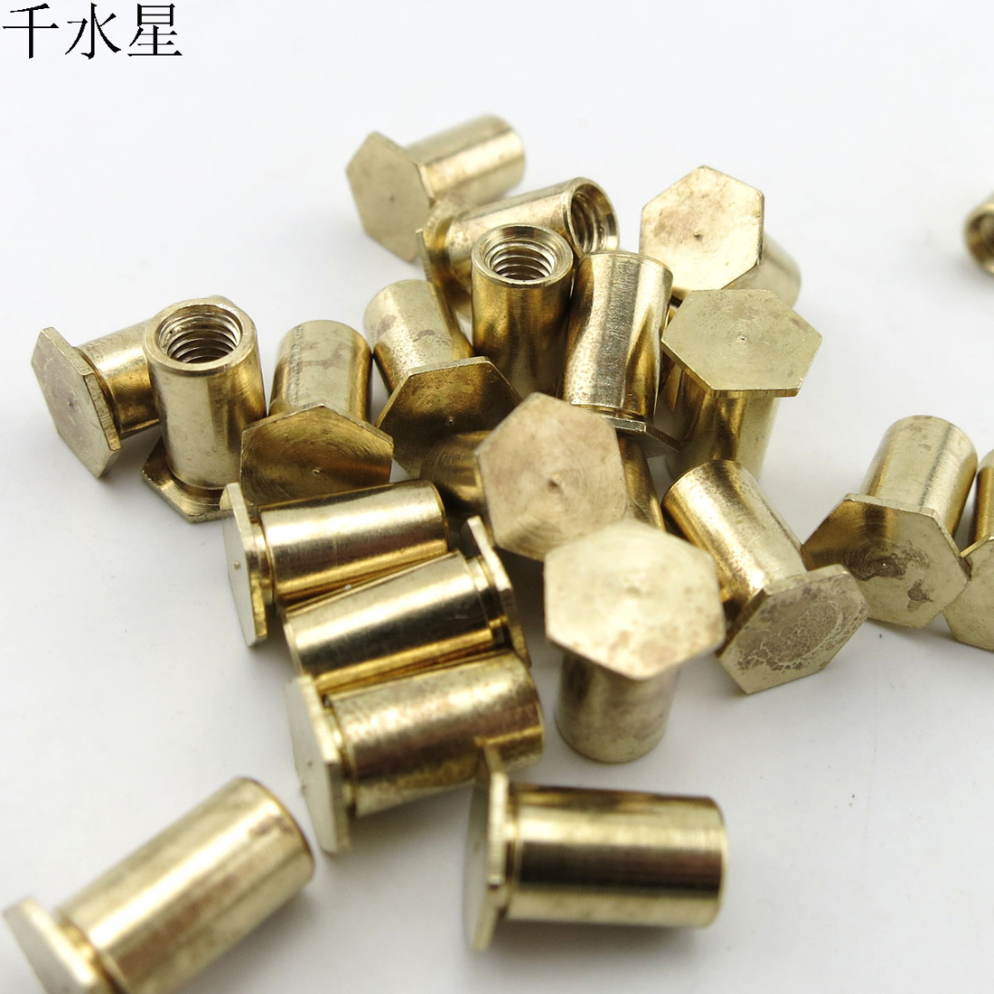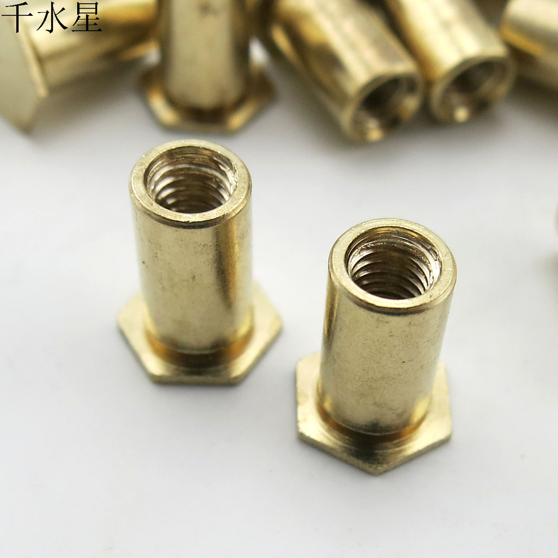 M3盲孔铜柱,一端是六角平面,一端是M3的螺丝孔。1包10个。可以用于固定车轮,或者安装到长螺丝一端起到轴挡的作用等。 【总高度】:8mm 【圆柱直径】:4.3mm 【六角面对边距离】:约6mm 【六角面厚度】:约0.4mm 【重量】:约0.69克/每个 【材质】:铜